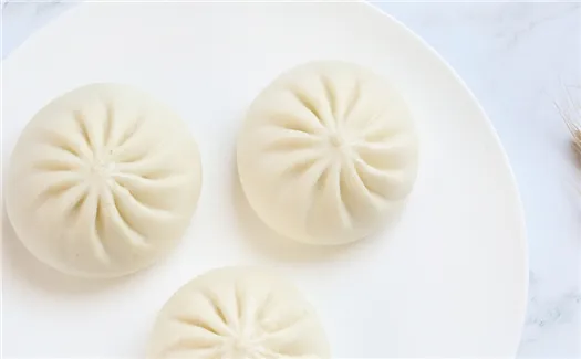 2、将发酵面团加入碱水揉匀,搓条、下剂,包入馅料捏成包子形,上笼蒸15分钟,取出装盘即成。