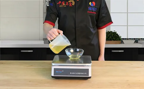 1、按照配方要求分别称量面粉、酥脆油条膨松剂、食盐、植物油和水。